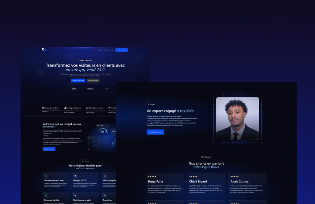 Chez CJ Agency, on conçoit des sites qui captivent dès la première seconde, pensés pour guider vos visiteurs jusqu’à l’action. Chaque détail est optimisé pour transformer l’attention en conversion.